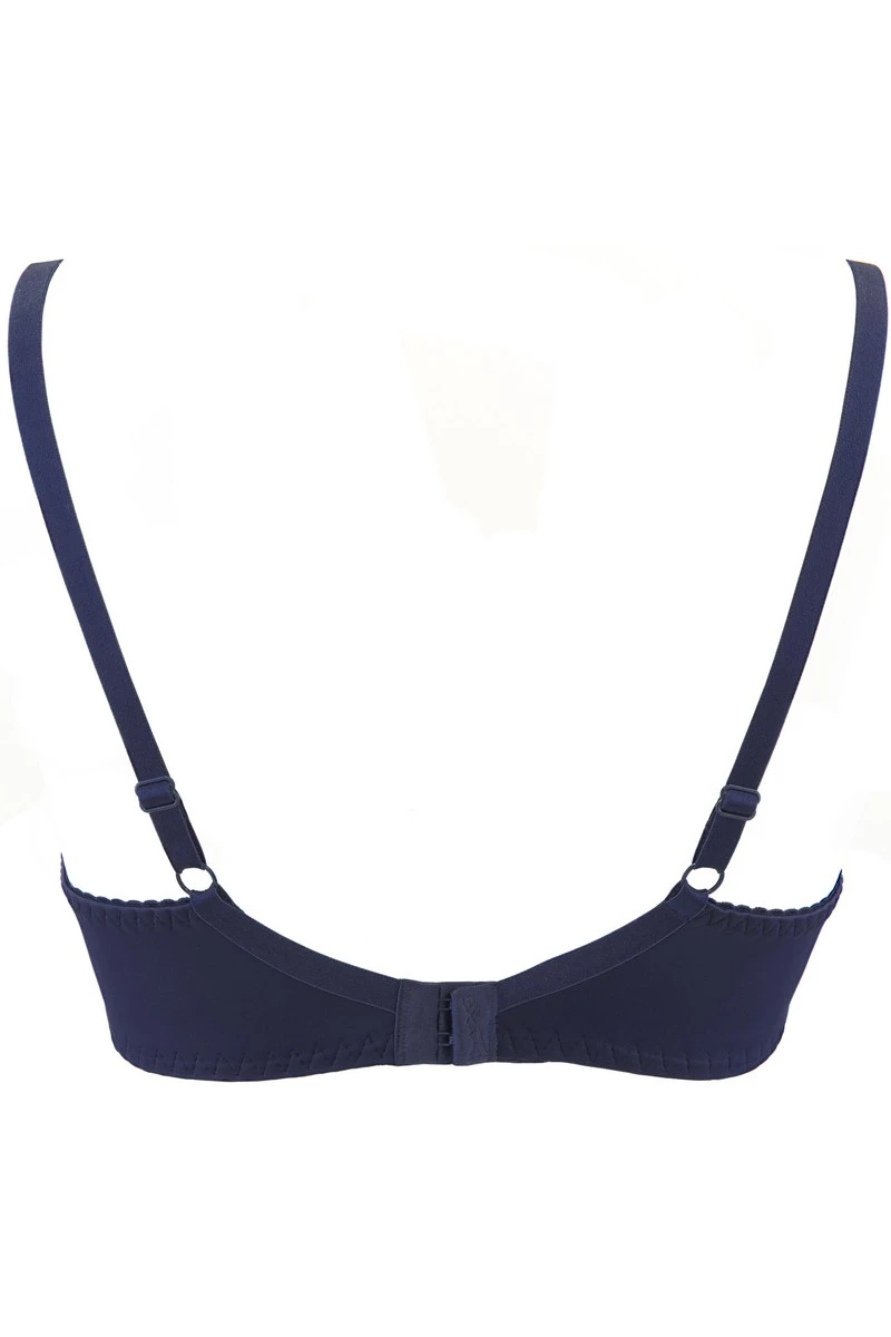 La féminité décuplée avec le soutien-gorge Blue Lagoon V-9341 ; il est fait dans un bleu nuit aguicheur et pourvu de détails floraux qui viendront décorer les bonnets. Sa structure emboitante est alliée à des bonnets fins qui sont prévus pour valoriser le galbe de la poitrine.
