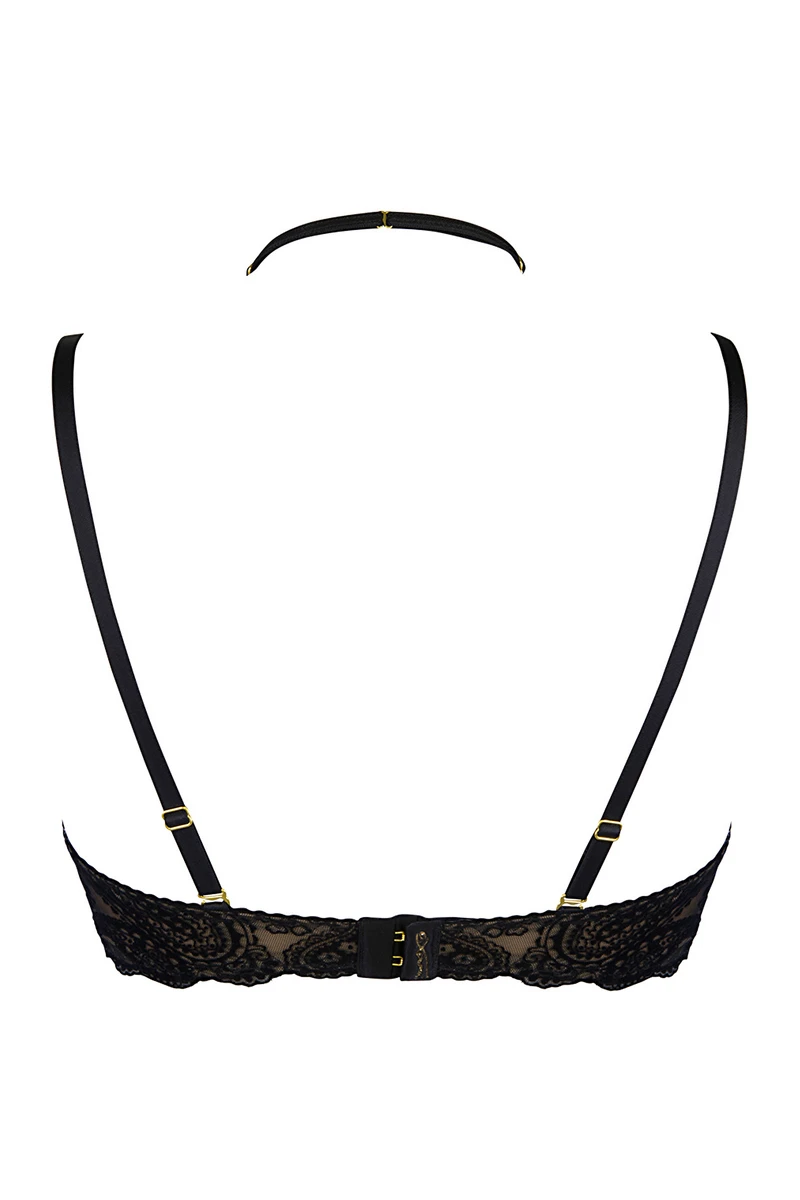 Toujours dans une originalité à toute épreuve, le soutien-gorge push-up V-10061 dispose des bonnets en dentelle, superbement décorés de motifs se posant sur le haut du buste avant de rejoindre son tour de cou.