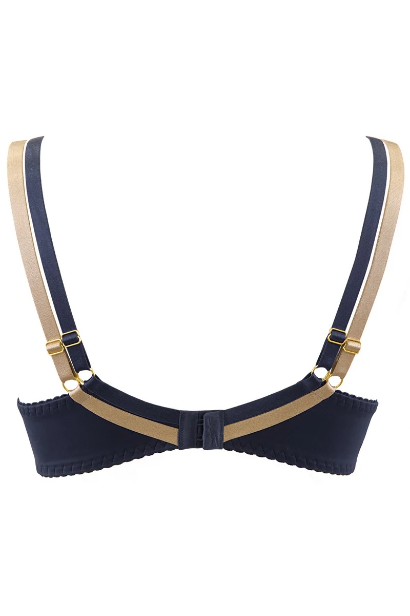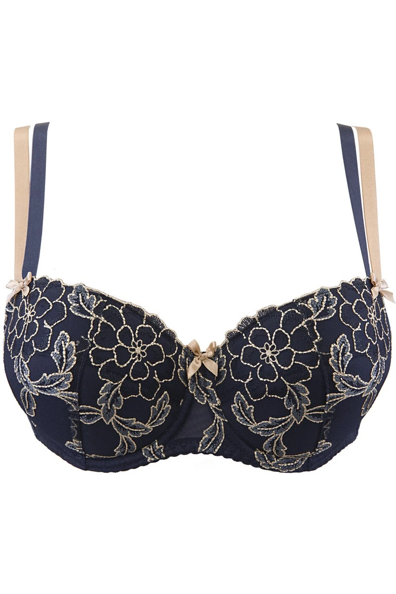 Côté style, les broderies dorées assurent une touche féminine très prononcée. On pourra plus facilement le remarquer en ajoutant le porte-jarretelles et le string assorti est ce soutien-gorge.