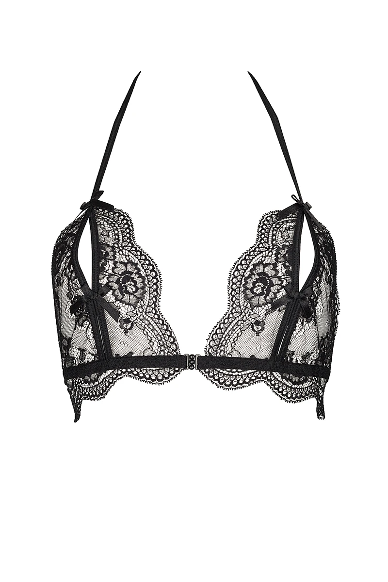 Le soutien-gorge Stella Maris V-5831 est très féminin et n’hésite pas à offrir des petites ouvertures coquines reliées par un petit noeud. C’est avec confort que sa dentelle florale recouvrira sensuellement la poitrine. une fine bande élastique aidera au maintien. Fermeture par l’avant et les bretelles se nouent derrière la nuque. Complétez la tenue avec la culotte ouverte V-5838.