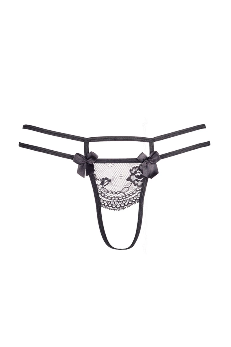 Accompagnez le redresse-seins Corona Australe V-5801 avec le string ouvert V-5808. Une dentelle florale habille le dessus du string tout en étant décoré de petits noeuds satinés. Sur l’arrière, une simple ficelle surmontée d’un noeud dégagera les fesses avec charme.