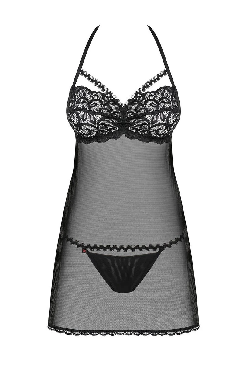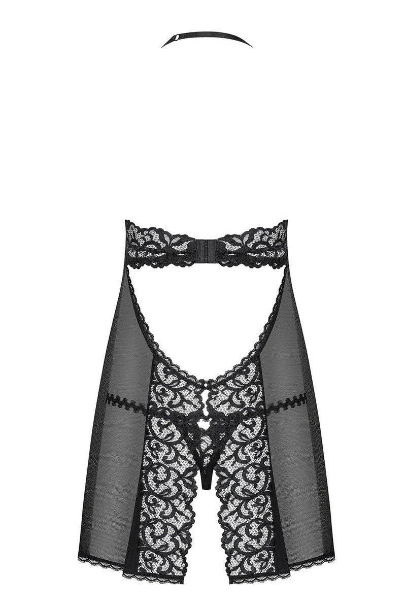 Le séduisant babydoll Joylace opte pour une coupe sobre et sexy, sans extravagance. C’est du moins ce que l’on peut croire vu de face. Il nous offre un joli décolleté, sans extravagance, créé par des bonnets de dentelle florale surmontés de petites pierres brillantes, qui mettront en valeur le centre du corps et la poitrine.