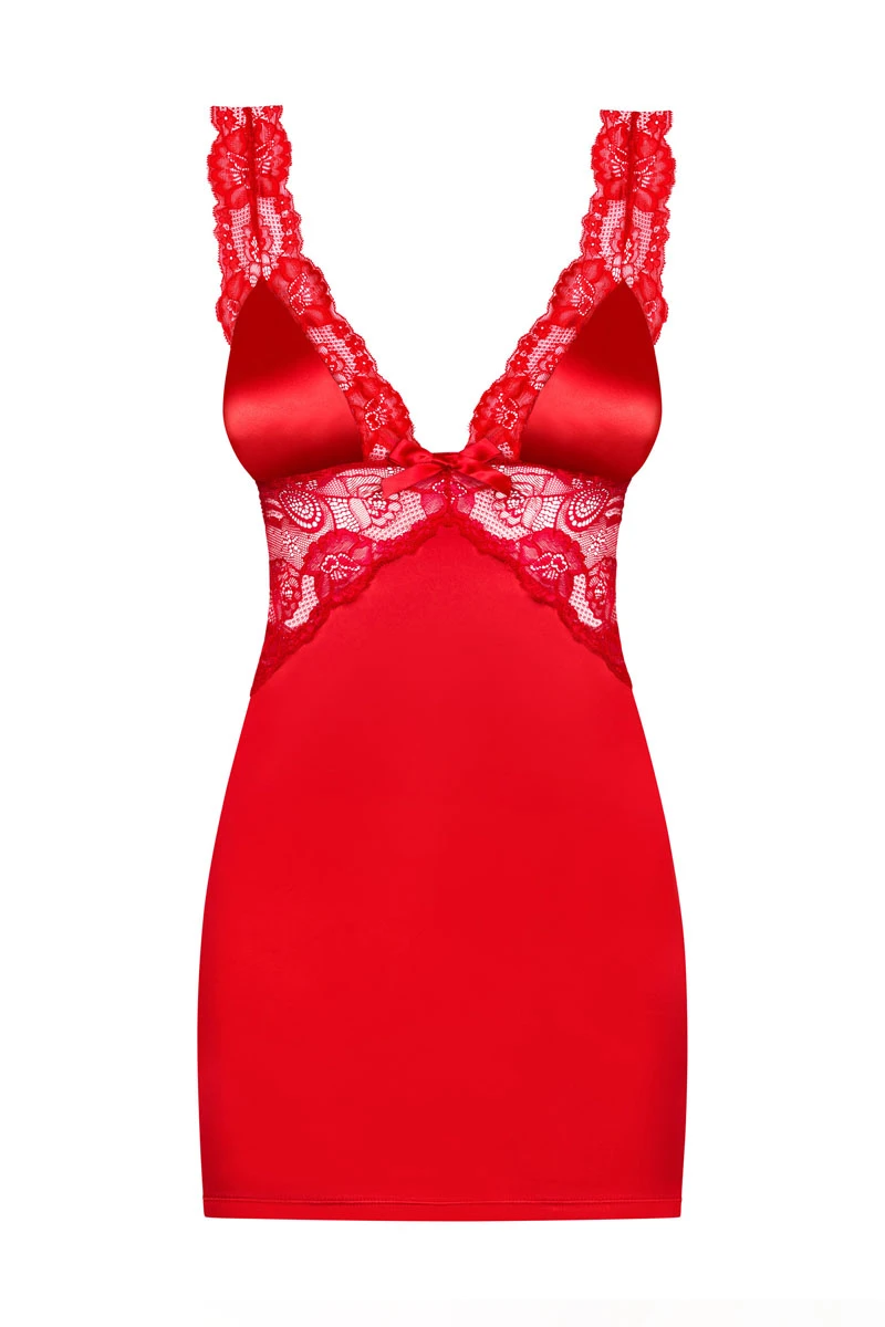 Romantique et glamour, la nuisette Secred mettra votre charme en feu. Sa matière satinée et sa couleur rouge pétante rendra la lingerie attrayante et attirante ! Le décolleté en V sublime la poitrine tout en la bordant de dentelle florale, un petit noeud est placé au creux du décolleté.